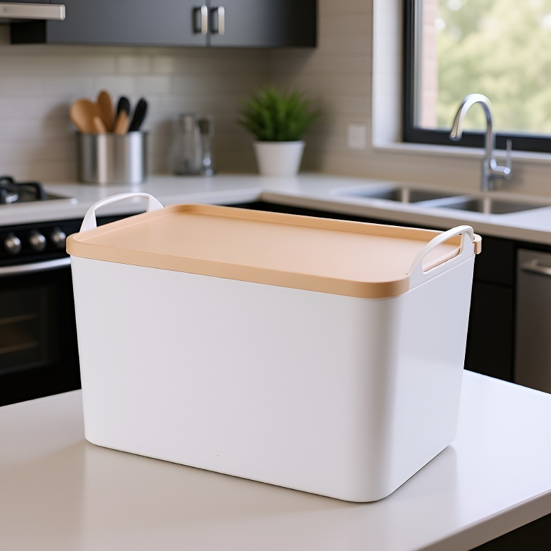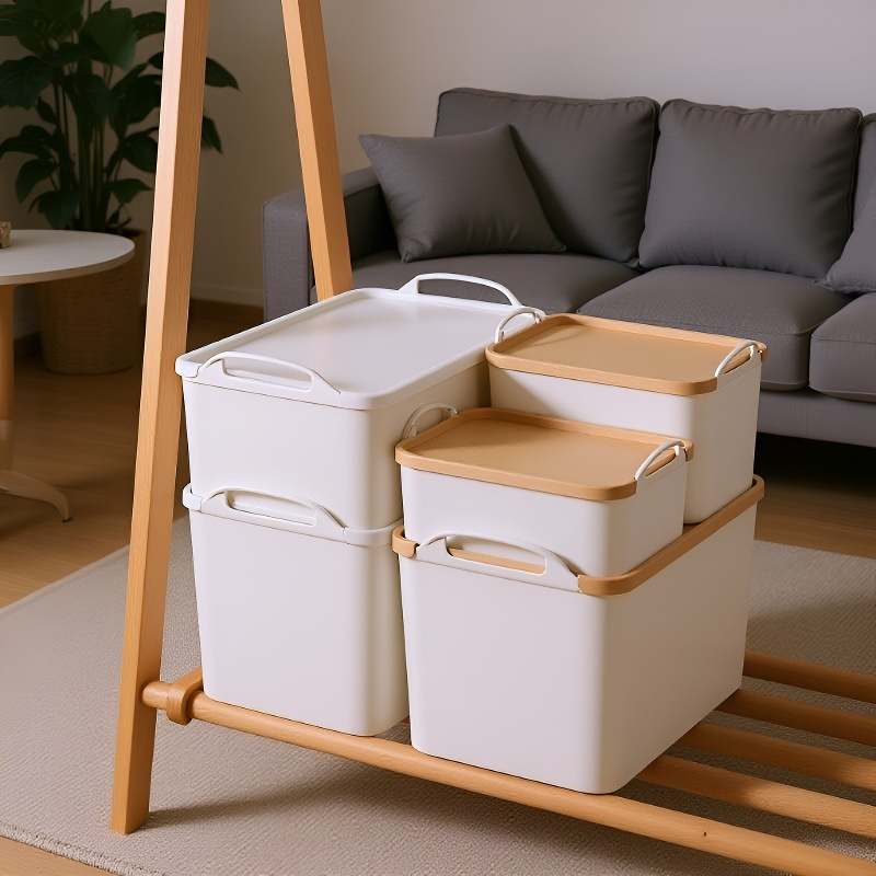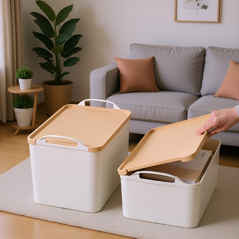 멀티 토트 수납함 솔리드 플라스틱 수납 정리함 덮개 달린 옷과 잡동사니 수납함